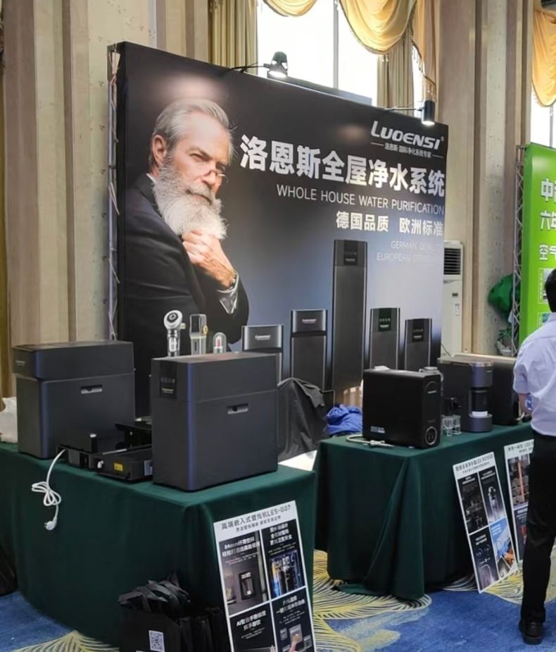 展会当日,洛恩斯展位人气爆棚,超百名来自暖通、建材、家电等领域的意向客商纷至沓来,挤满展位咨询洽谈。其中不乏西北地区知名暖通工程商、建材连锁采购负责人及家电渠道代理商。值得关注的是,洛恩斯针对西北地区高硬度水质特点,重点展示了搭载第三代太空RO膜技术的大流量纯水机和中央软水机解决方案。现场技术人员演示了这些产品如何有效去除水中的钙镁离子,为当地居民提供更健康的饮用水和洗浴用水,吸引了众多专业观众驻足交流。