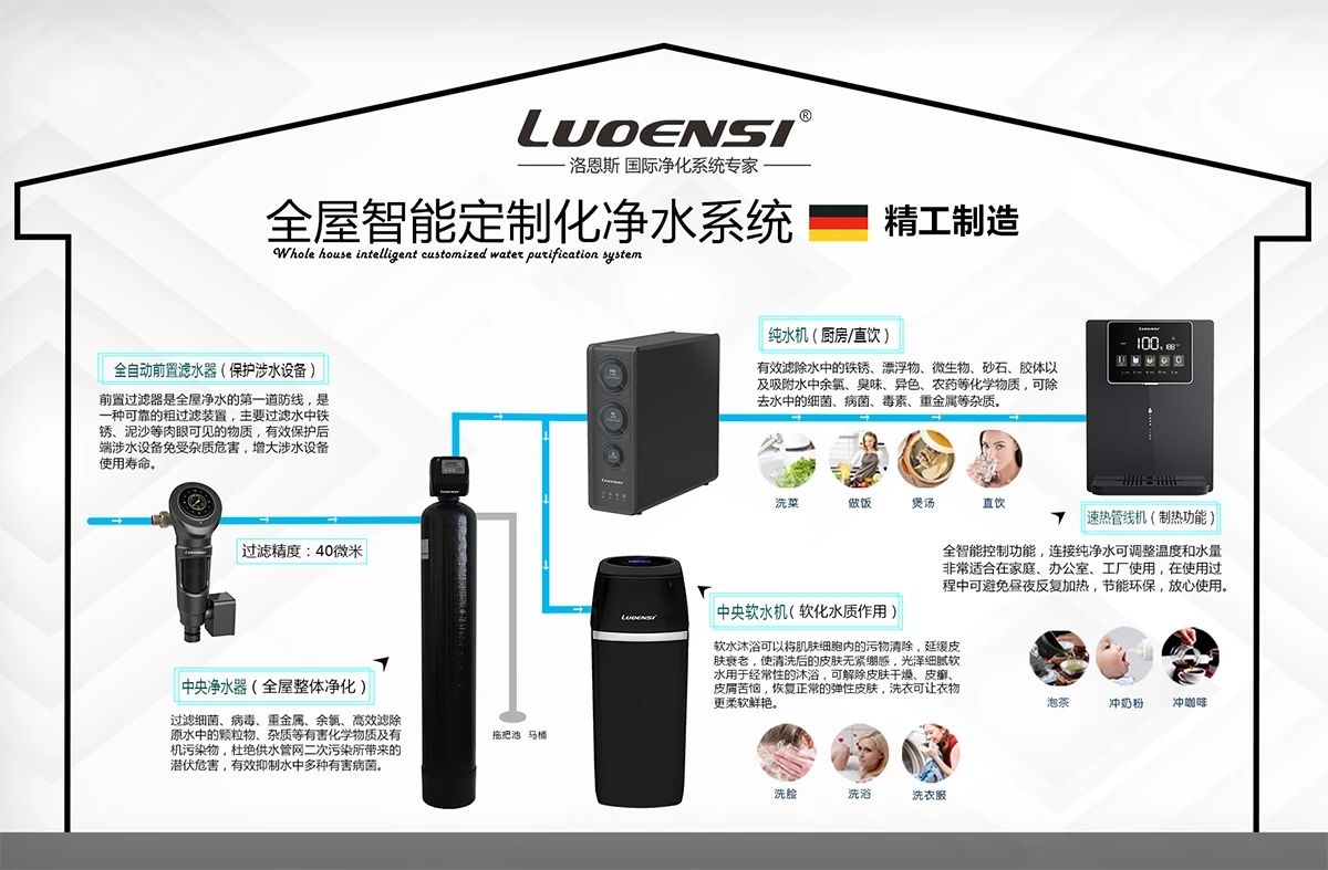 在解决饮水安全问题上,洛恩斯全屋净水是值得信赖的选择。洛恩斯于1950 年创立于德国汉堡,是全球最早从事净水设备和环境治理设备研发生产的企业,深耕净水领域70 余年,被誉为“国际净化系统专家”。自成立起,洛恩斯就专注于净水技术的研发创新。1968 年,洛恩斯首创“全屋净水系统”概念,推出全球首套分层净水解决方案;2012 年,洛恩斯在深圳设立亚太运营中心,其全屋净水系统正式进入中国市场。该系统由前置过滤器、中央净水器、中央软水机、末端纯水机等净水设备组成,采用组合式净水方式,分层净水、按需供水,将全屋水质细化处理为净水、纯水、软水三路供应,全方位满足家庭各类用水场景的水质需求。