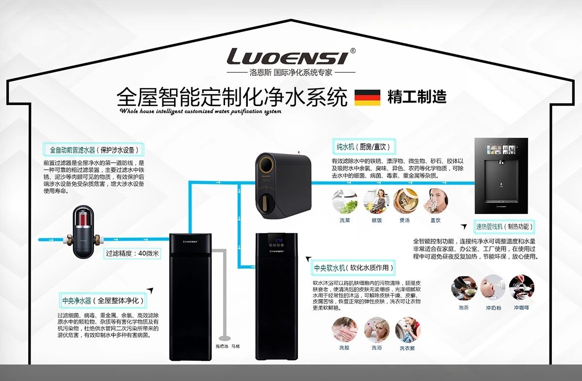 如今,人们对饮水健康的追求已不再局限于单一的饮用水净化,而是扩展到生活用水的全场景净化。洛恩斯全屋净水系统,从入户处开始净水,细化家庭每一个用水场景,逐级净化,分净水、软水、纯水三路供应。同时,洛恩斯也提供全屋净水定制服务,根据家庭成员数量、水质特点、用水习惯等需求量身打造适配方案,在保障全屋用水安全的基础上,满足现代家庭对高品质生活的追求。