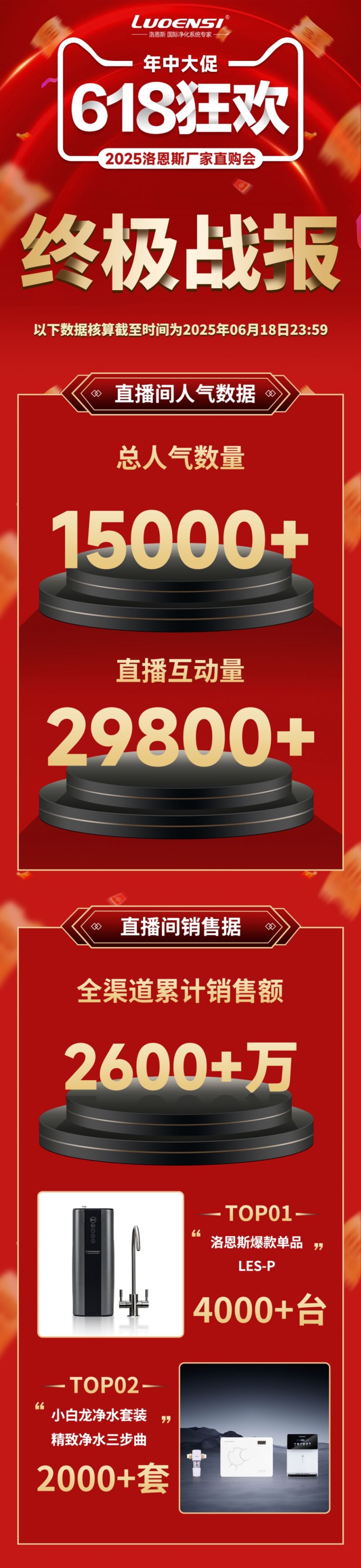 本次洛恩斯618厂家直购会虽已收官,但洛恩斯守护健康水生活的承诺永不落幕!感谢每一位家人的守候、互动与下单,是你们的信任,让这场直播意义非凡 。未来,洛恩斯将继续以优质产品与服务,让更多家庭享受到“安心好水”。