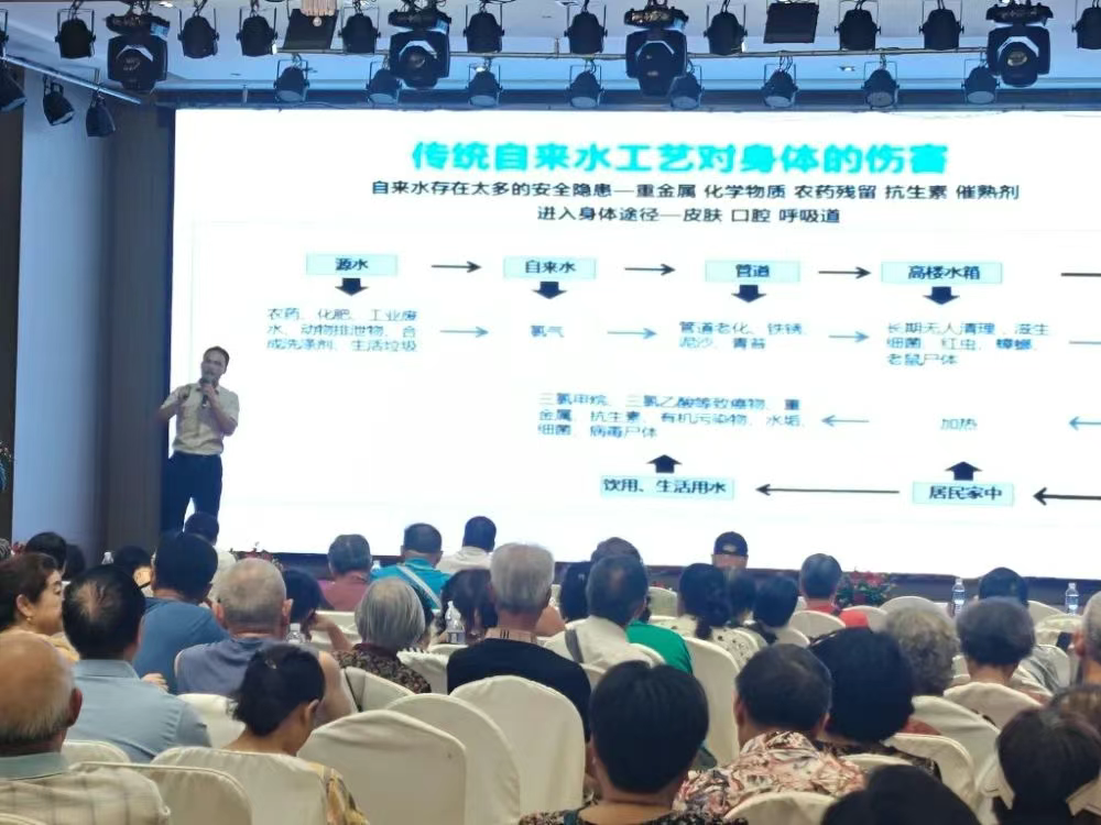 发布会现场,洛恩斯商学院院长樊佳辉带来全屋净水知识分享。从家庭安装全屋净水系统的必要性,到水源净化的科学原理,再到不同场景下净水方案的选择,樊院长结合生动案例与直观图示,深入浅出地讲解,让与会者对全屋净水有了更全面的认识。
