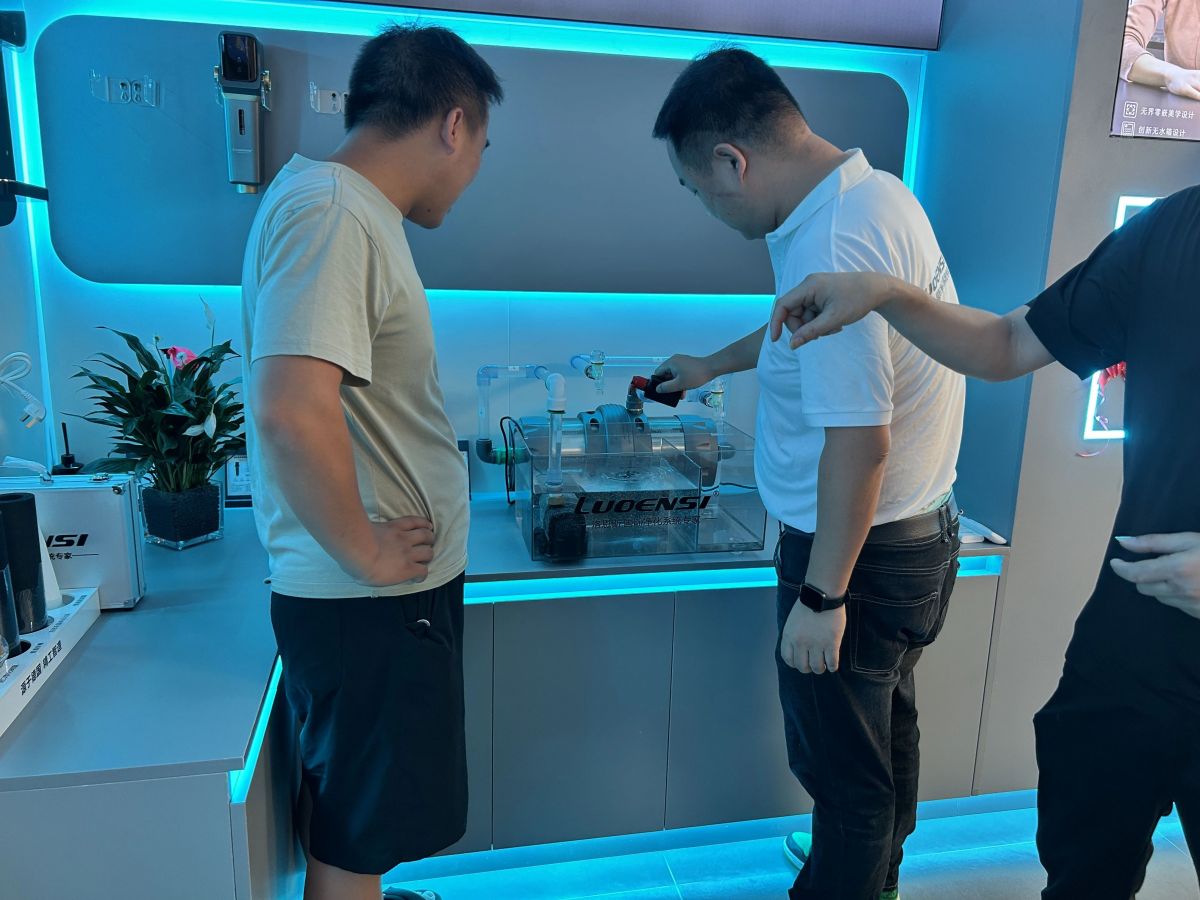 开业现场,在总部动销团队引导下,店内人员各司其职,以专业热情的服务迎接每一位进店顾客。面对净水产品相关疑问,他们耐心解答,从水质分析、产品功能到安装流程、售后保障,用通俗语言让顾客了解全屋净水系统的重要性,不少顾客亲身体验后对洛恩斯产品兴趣浓厚。