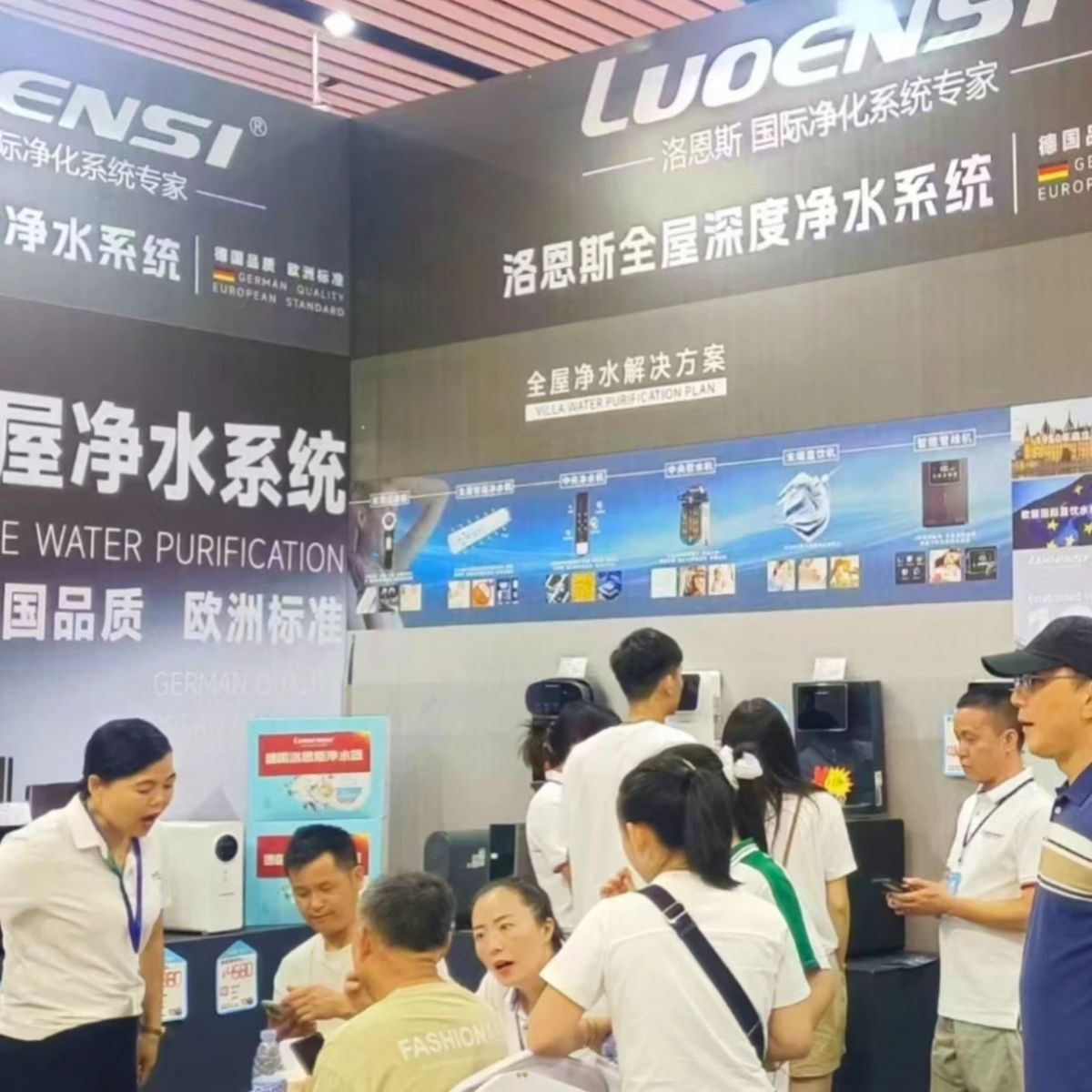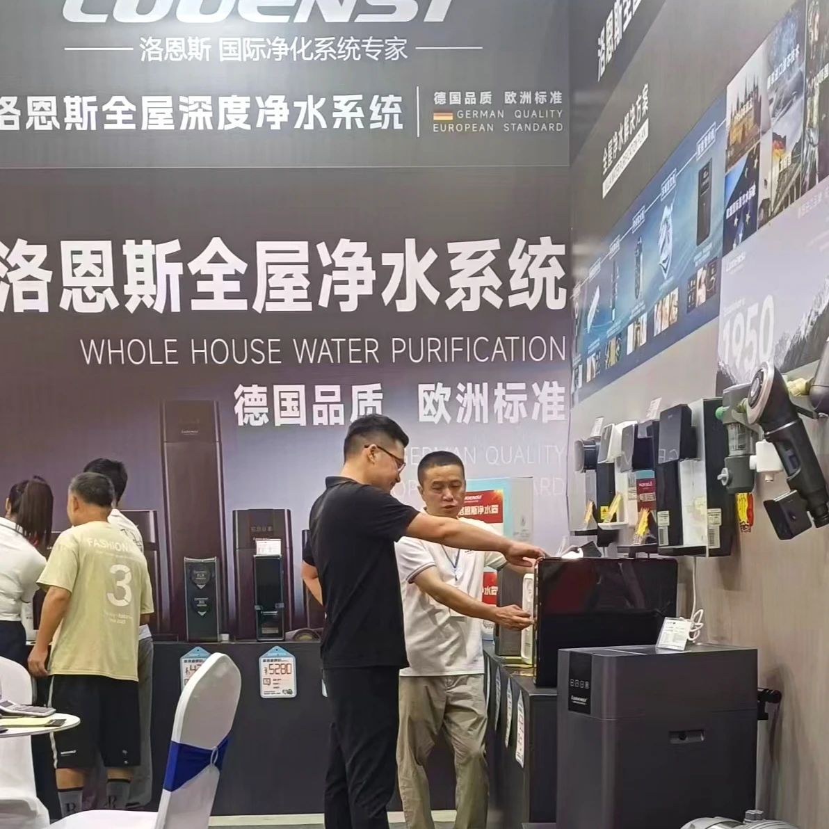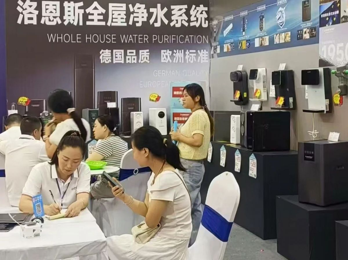 展会期间,洛恩斯展位客流不断。简约而不失格调的欧式展台设计,前置过滤器、中央净水机、中央软水机等全系明星产品整齐陈列,刚开馆就吸引了大批参观者驻足,大家对全屋净水的关注度极高,现场咨询、体验、洽谈氛围异常热烈!