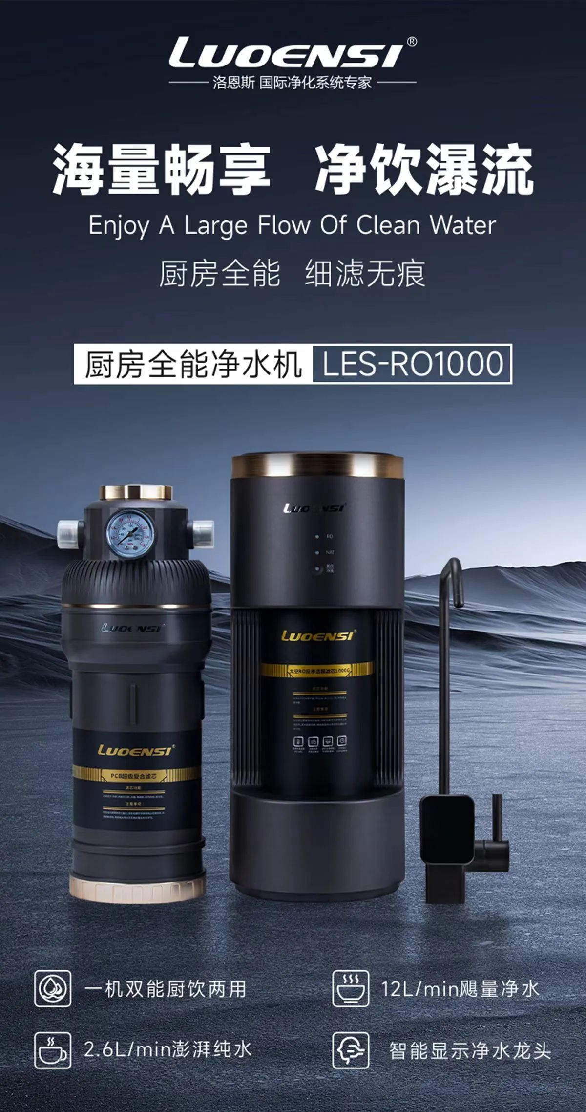 洛恩斯尊耀系列厨房全能净水机RO1000,以大流量、精过滤、智能便捷等优势,成为众多家庭的热门选择。