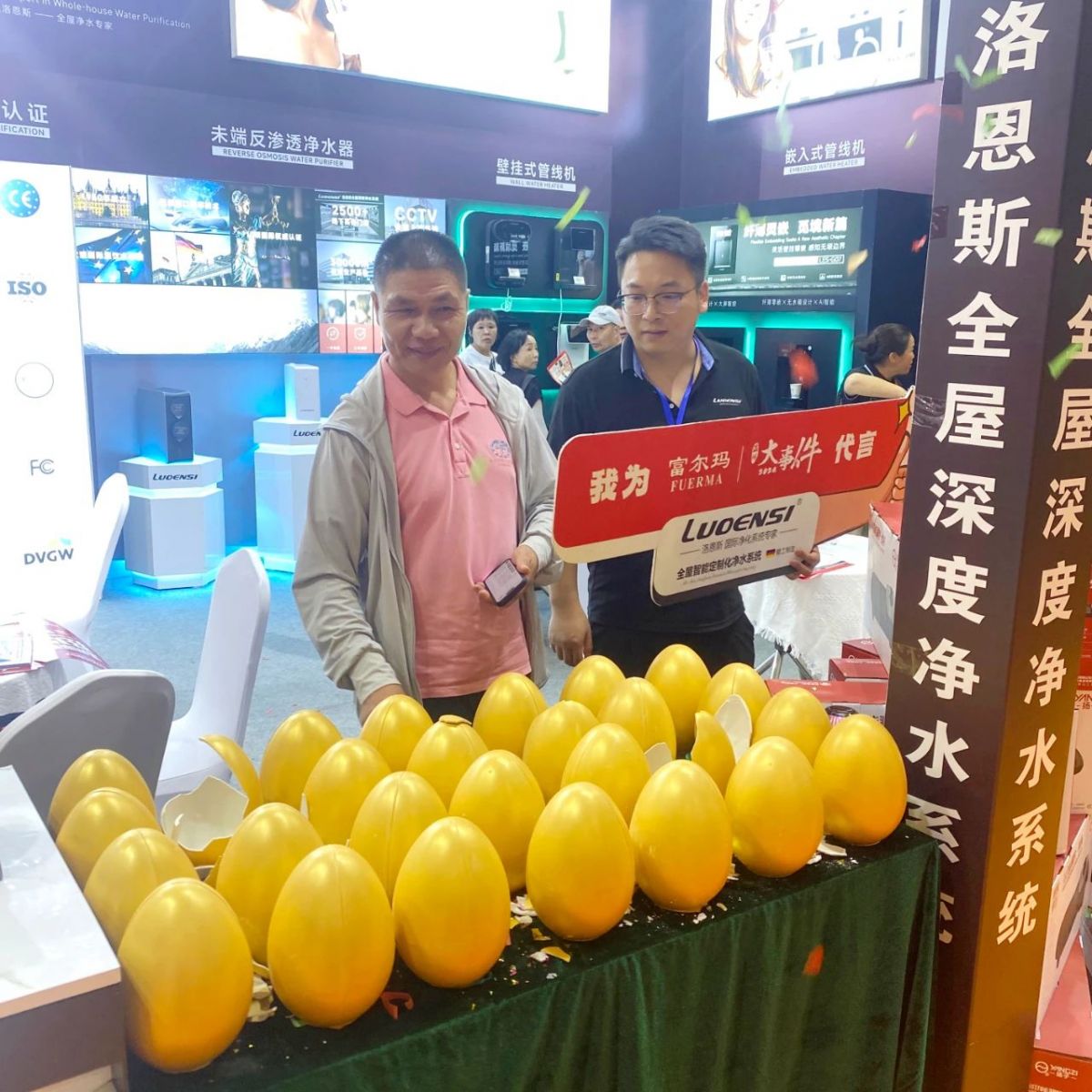 继6月份华夏家博会创下27单的佳绩后,此次温州家博会洛恩斯全屋净水再度传来捷报,签单量达43 单!温州伙伴郭总信心倍增,决定将净水团队扩充至6人,以更专业的服务深耕当地市场,让更多温州家庭享受到健康净水体验。连续斩获亮眼成绩,这其中离不开温州团队的积极开拓与精准执行,更印证了“厂商协同、聚力共赢”的发展理念。