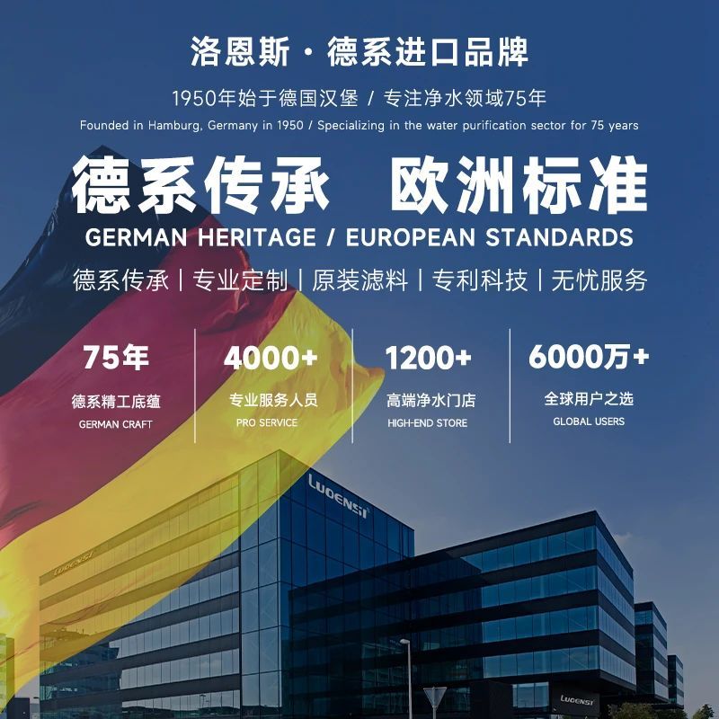 德国洛恩斯,作为全屋净水系统服务商,深耕净水行业75年,早已在全球市场树立起“专业、可靠”的品牌形象。洛恩斯1950年创立于德国汉堡,是全球最早的净水设备研发生产企业,被誉为“国际净化系统专家”。2012年洛恩斯总部在中国深圳设立亚太地区分公司,拥有上万平米的研发、生产中心,每一款净水器产品都运用国外先进技术和国际领先工艺,同时高端大气又时尚的外观设计尽显洛恩斯净水品质格调与高端质感,能给消费者带来不一样的享受与体验。