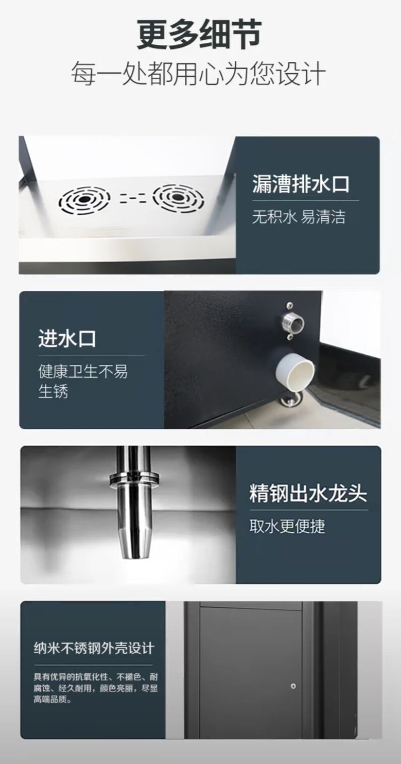 采用高效加热与节能技术,避免传统饮水设备的水资源与能源浪费,实现即热即饮、持续供水,满足办公时段多人集中用水需求,同时降低长期运营的能耗成本,兼顾高效供水与经济实用性。