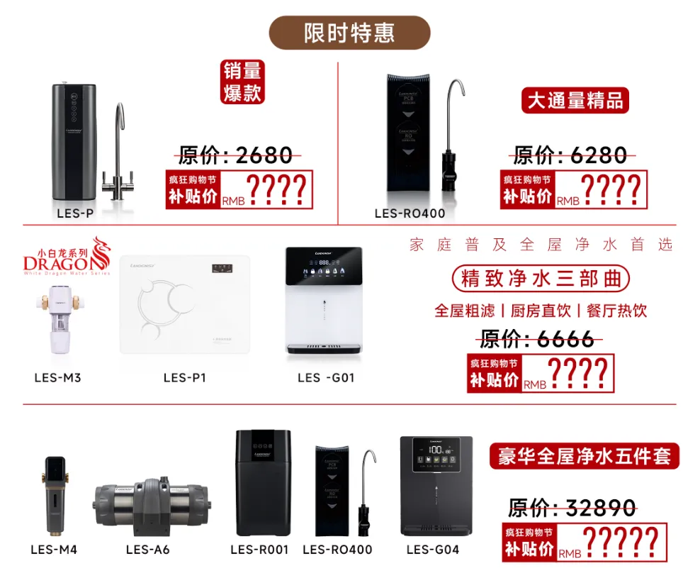 不用比价纠结!洛恩斯多款明星净水产品限时放价,涵盖厨房净水、全屋净水管道、中央软水机、管线机等全系列爆款及套餐组合,价格直接击穿行业底价,无论是新屋装修还是老房净水升级,都能找到高性价比选择,好水一步到位!
