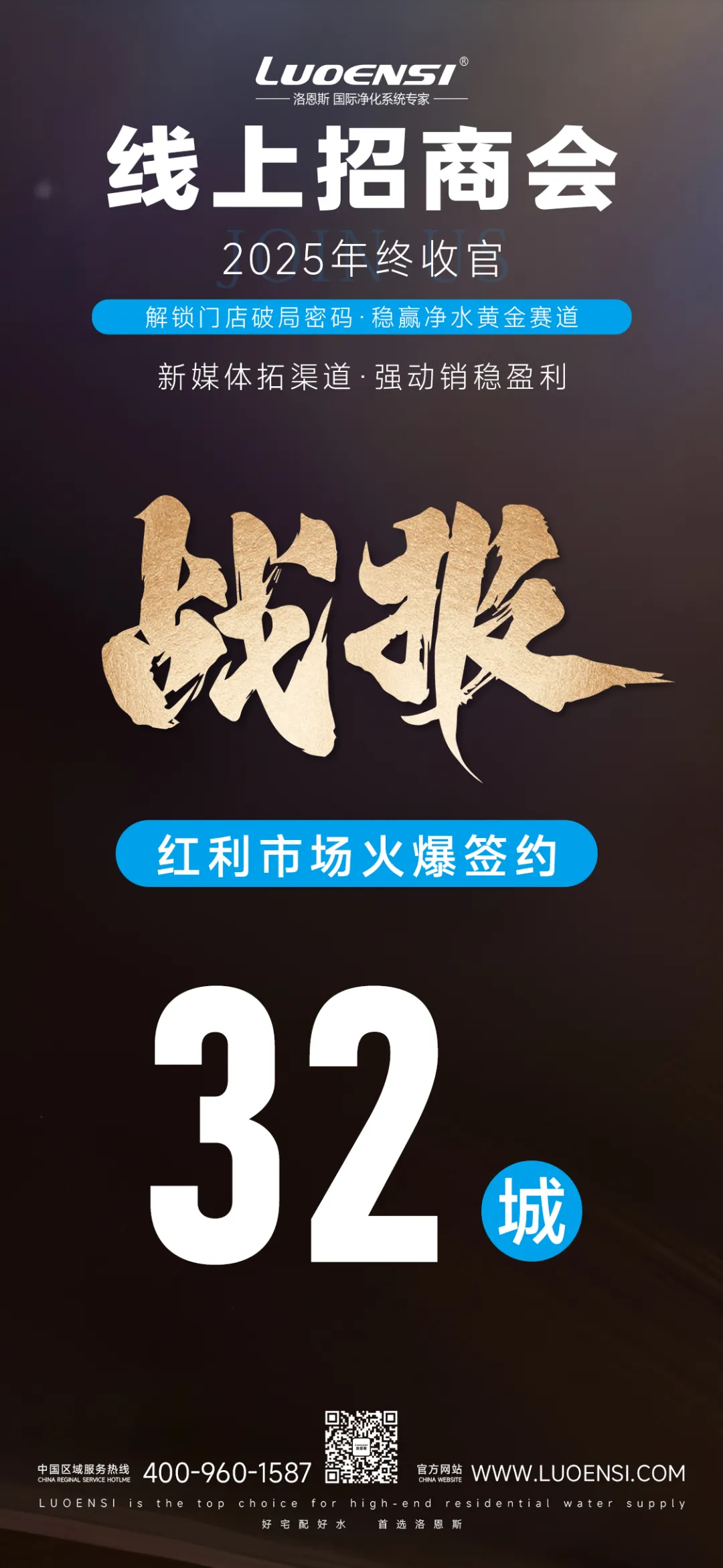 2025年12月23日19:00,以“解锁门店破局密码,稳赢净水黄金赛道”为主题的洛恩斯2025年终线上招商会圆满开播!洛恩斯商学院院长樊佳辉、中国区市场总监林敏及核心招商团队再度集结直播间,与全国意向加盟商深度对话,解码建材家电行业新周期下的破局核心打法与获客新路径,全方位呈现品牌硬实力与加盟新机遇。直播全程干货密集、福利轰炸,最终以32 城签约的亮眼战绩,为 2025 年终招商画上完美句点!