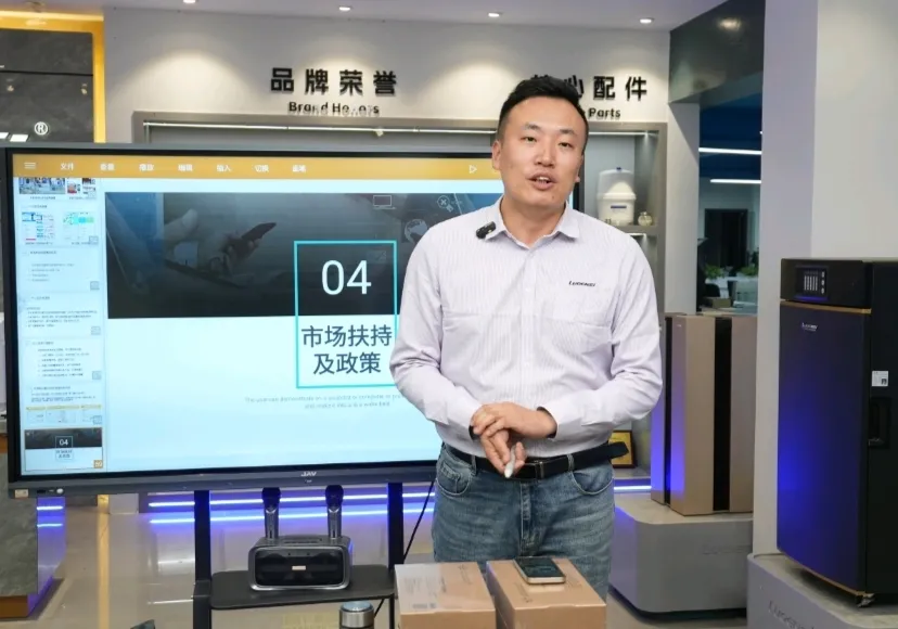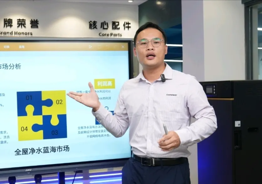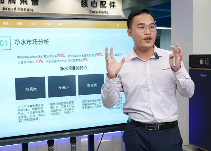 樊院长通过品牌发展脉络梳理、优秀代理商实战案例分享及全球合作成果展示,让意向加盟商直观感受品牌深厚积淀。随后的差异化产品精讲与功能实景演示更是干货十足:从核心滤芯技术的创新突破,到家庭、商用等全场景全屋净水解决方案定制,再到全周期售后服务保障,以及与同类产品的核心竞争力对比,层层深入的讲解,不仅展现了品牌在净饮水领域的技术沉淀,更明确了 “以价值制胜” 的发展路径,为加盟合作筑牢坚实信心。