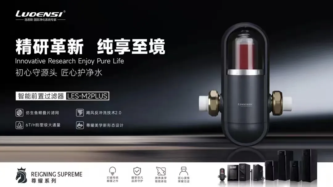 适合爱烧开水、看重日常饮食用水的家庭,先通过前置过滤器做好全屋用水第一道防护,再用厨房末端净水守护饮食用水洁净。前置过滤器推荐洛恩斯LES-M2plus,创新仿生鱼鳃式滤网40微米精滤,高效拦截水中泥沙、铁锈、虫卵等大颗粒杂质,搭配高压反冲洗强力去污,免拆洗更省心,每小时6吨大通量充分保障全屋涉水设备供水充沛。
