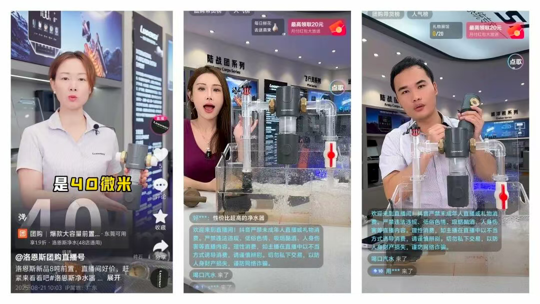 8月,洛恩斯全屋净水抖音团购项目全新启动,解锁消费终端新场景,赋能代理商新增长。