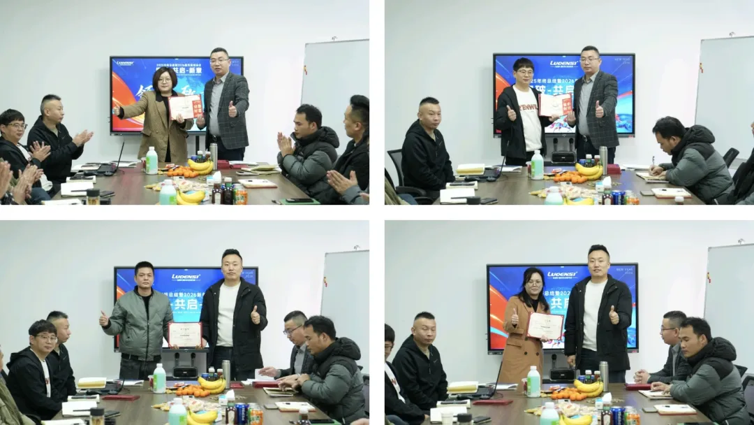 表彰环节中,销冠、优秀员工、创新突破奖、服务之星等多个奖项依次揭晓。获奖代表们纷纷发表感言,感谢公司与团队的支持,并表示将把这份荣誉化为前进的动力,在2026年继续深耕岗位、再创佳绩。