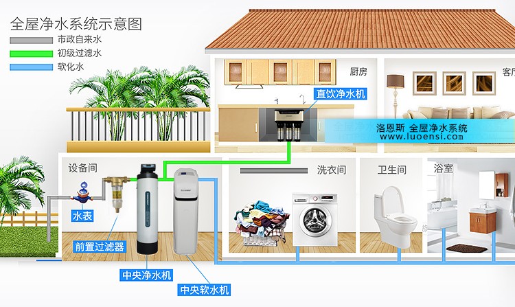 家庭里除了厨房用水和正常饮水,还有很多地方会用到水,比如洗脸刷牙,如果水不干净,水中的有害物质也会通过皮肤渗透的方式入侵人体。所以我们必须对家庭所有用水场景的水净化处理,才能全面保证家庭用水环境安全,中央净水器就承担起了全屋水净化的重任。洛恩斯中央净水器,水通量在2000L/H以上,可以轻松满足大中型家庭和别墅型家庭的全屋净水需要。