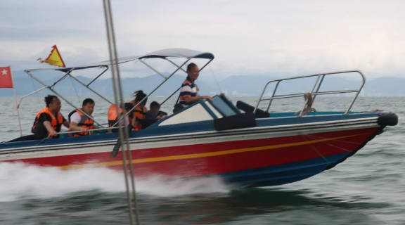 我们乘坐快艇,从内河入海,感受到了江海交汇的神奇。快艇疾驰在宽阔的海面上,迎着风浪,如箭似飞。