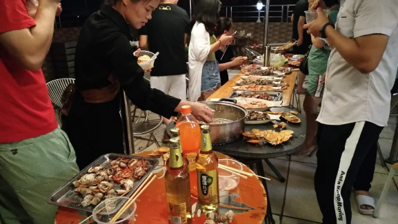 在夜色中,我们吹着海风,唱着歌,觥筹交错,把酒言欢,好不热闹;大家开怀畅谈,欢声笑语,亲如一家人。