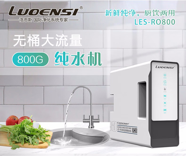 目前净水器市场上的末端净水产品主要有超滤机和纯水机两种,超滤机过滤精度0.01微米,RO反渗透纯水机过滤精度能达到0.001微米,两者都可以过滤掉水中的有害物质,纯水机能过滤水中的钙镁离子和重金属,适合水质硬、水质差以及对水质要求更高的客户群体。洛恩斯纯水机全系列采用双水设计,一机在手,生活水和纯净水随心选择。