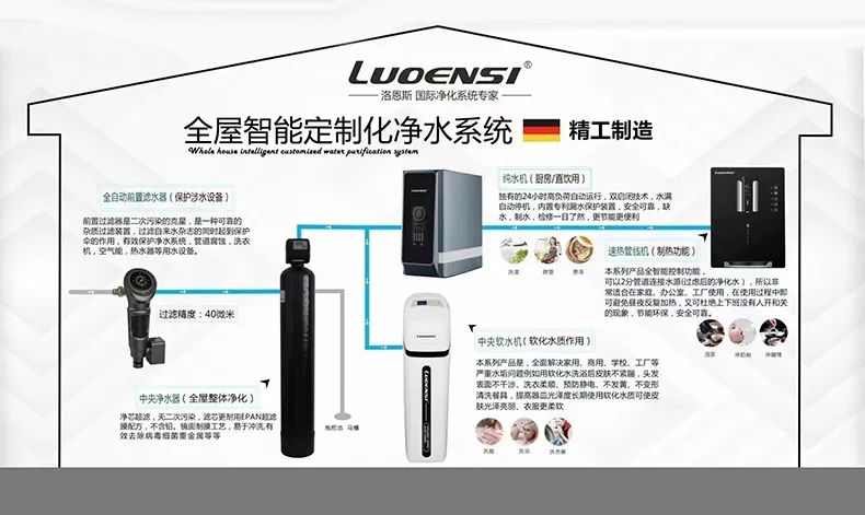 看过图解后,估计大家对全屋净水系统已经不再陌生了,洛恩斯全屋净水系统不是一套固定的配置,是有多种搭配方案,可以根据客户的具体情况和净水需求来进行配置,比如家庭人口不同、户型空间面积不同、现在流行的双卫生间和多卫生间户型以及大平层和多层别墅,洛恩斯都有不同的专业的全屋净水方案提供给客户。