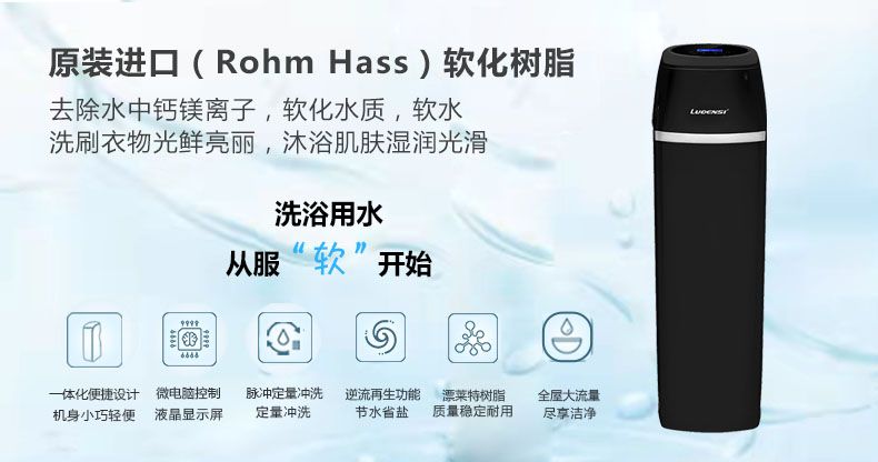 洛恩斯智能中央软水机LES-R001,原装进口德国拜耳软化树脂填充量15L,确保水质软化质量.全自动再生功能,再生时间电脑自行设定.智能液晶显示,时时监控机器使用状况,1000LH的额定流量,轻松满足全家用水需求。