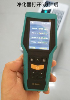 经过5分钟的净化后,房间中央位置的PM2.5/PM10分别为6和9(μg/m³)(根据国家空气质量标准PM2.5的一级标准为24小时平均浓度不超过35μg/m³),由此可见,此款空气净化器的净化能力完全符合国家的空气质量一级标准。