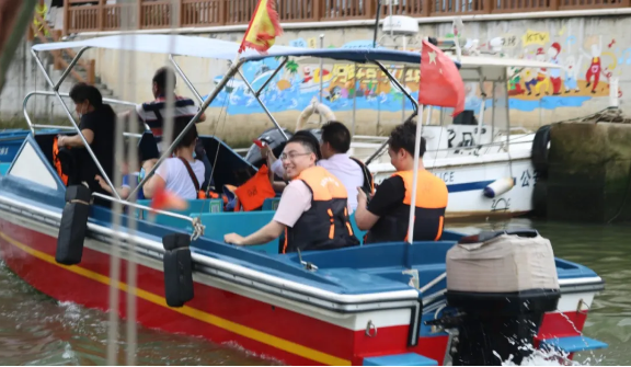我们乘坐快艇,从内河入海,感受到了江海交汇的神奇。快艇疾驰在宽阔的海面上,迎着风浪,如箭似飞。
