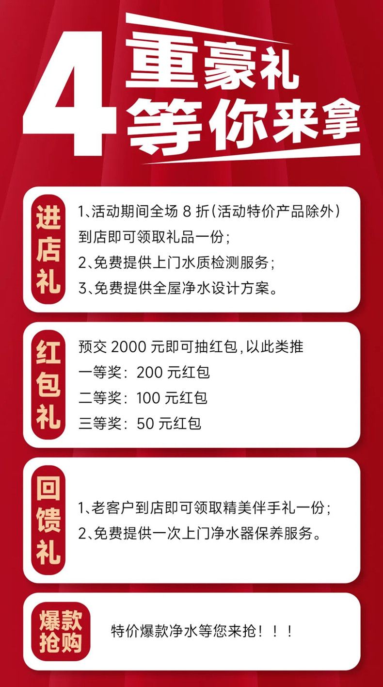 活动内容:光顾洛恩斯任意一家品牌专营店,即可参与本次优惠活动,享受4重好礼,活动详情如下图。其他优惠项目以洛恩斯当地品牌专营店为准。