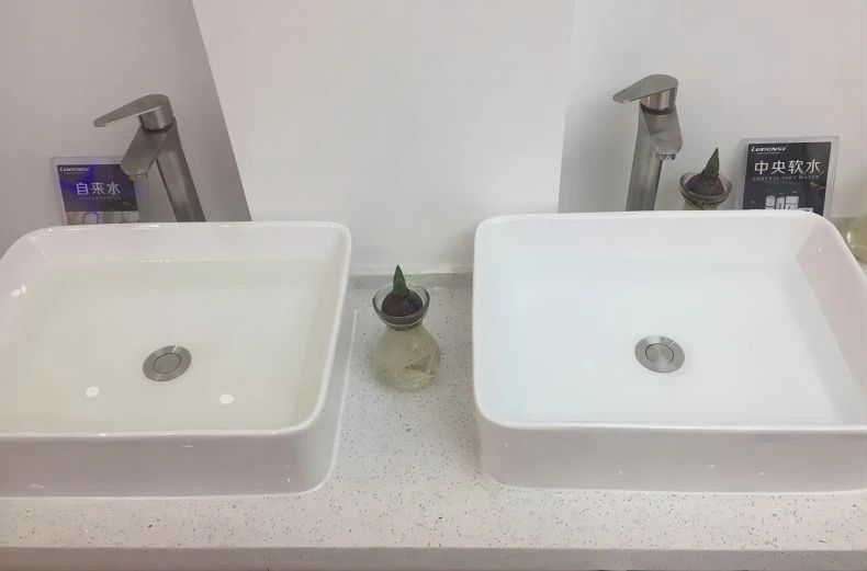 洛恩斯高端智能软水机软化后的水和自来水的对比