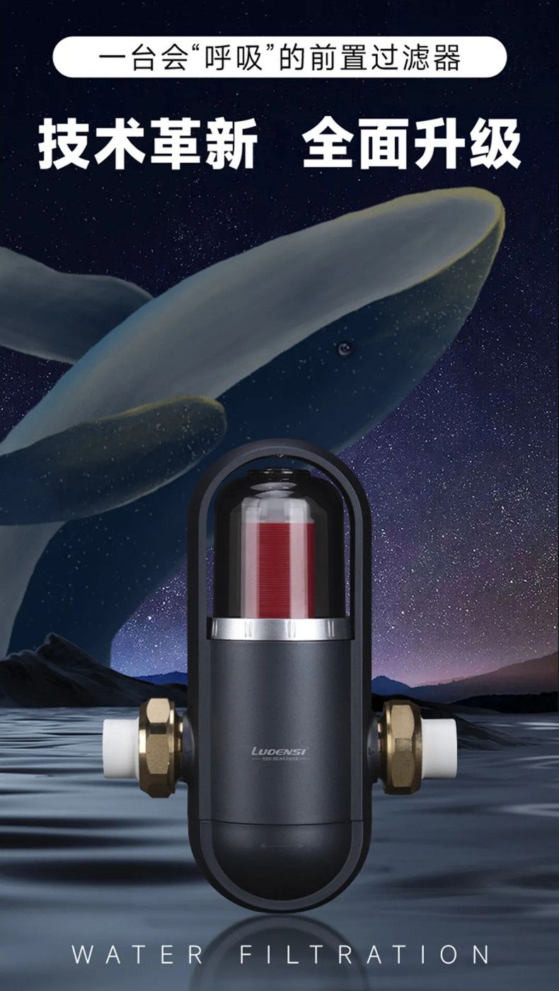 净水行业的发展趋势是智能化和系统化,全屋净水系统越来越受到中高端消费群体的关注,全屋净水系统的第一关是前置过滤器。“前置”:就是安装在自来水入户端;“过滤”,则是它真正的作用,用于过滤颗粒直径较大的沙粒、铁锈等,同时,前置过滤器对地暖管道、家用水龙头、涉水电器等都能起到很好的保护作用,延长涉水电器的使用寿命,是家庭水路净化的首道关卡,也被人们称为水路“守门神”。洛恩斯最新尊耀系列鲸鲨前置过滤器LES-M2PLUS,以初心守源头,以匠心护净水,是您家装的不二选择。