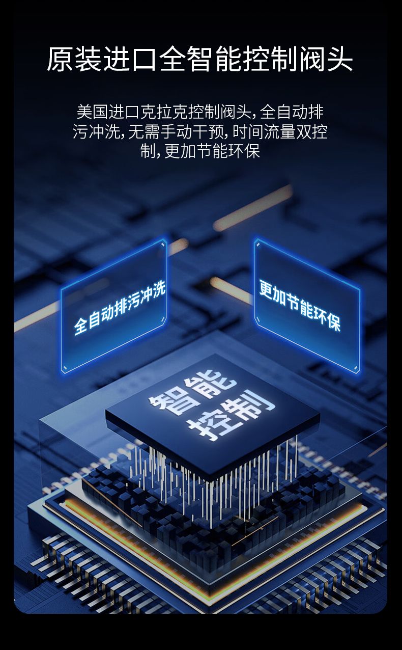 美国进口克拉克控制阀头,全自动排污冲洗,无需手动干预,时间流量双控制,更加节能环保!美国智能进口控制阀:高强度材料,运行平稳、经久耐用,光电式传感器,精准定位;更高的精准度、 更快的测量速度;进口高级食品级玻璃纤维材质,结构精密,抗压耐磨损。