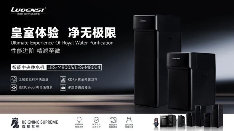 今年5月,洛恩斯全新升级尊耀系列中央净水器重磅上市,两款型号LES-M8003、LES-M8004可满足不同户型,它是一款高颜值、高性能、更智能、更省力的中央净水机,它能搭配多种末端净水设备使用,为用户打造全方位科学净水生活,深受广大消费者青睐,成为健康饮用水的最佳选择。