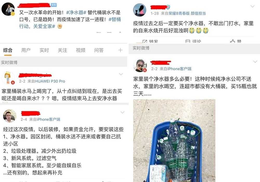 机遇之下,也对净水行业有了新的挑战。一些没有渠道网络支撑,品牌知名度较低的净水器品牌,可能生存会比较困难。因为短时间内,人们对群体性聚集心有余悸,会销、促销等模式难免受挫。